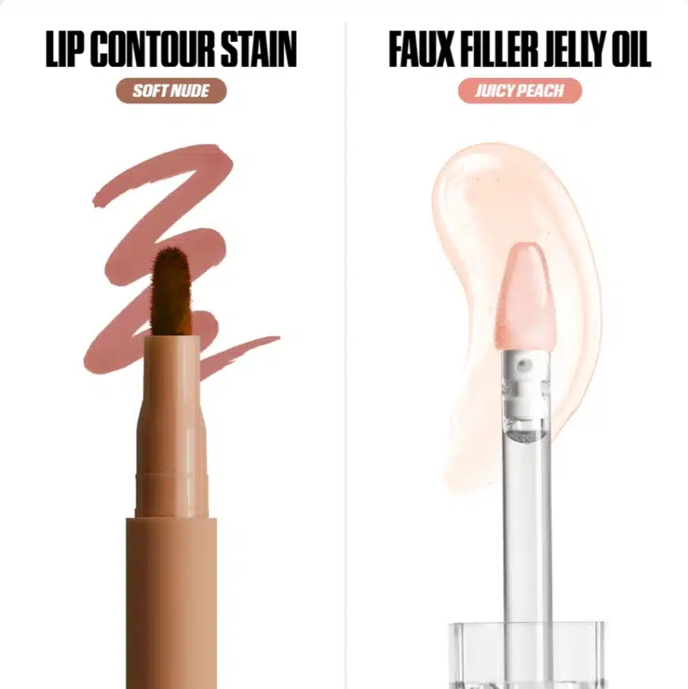 Create the perfect peachy nude lips with the Huda Beauty Makeout Sesh Lip Duo – a limited-edition set designed for long-lasting, juicy, and effortlessly defined lips. This must-have duo combines a highly pigmented lip contour stain with a hydrating jelly oil to give you a soft matte base topped with a glossy, plumped finish.
