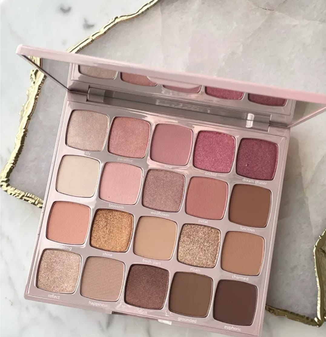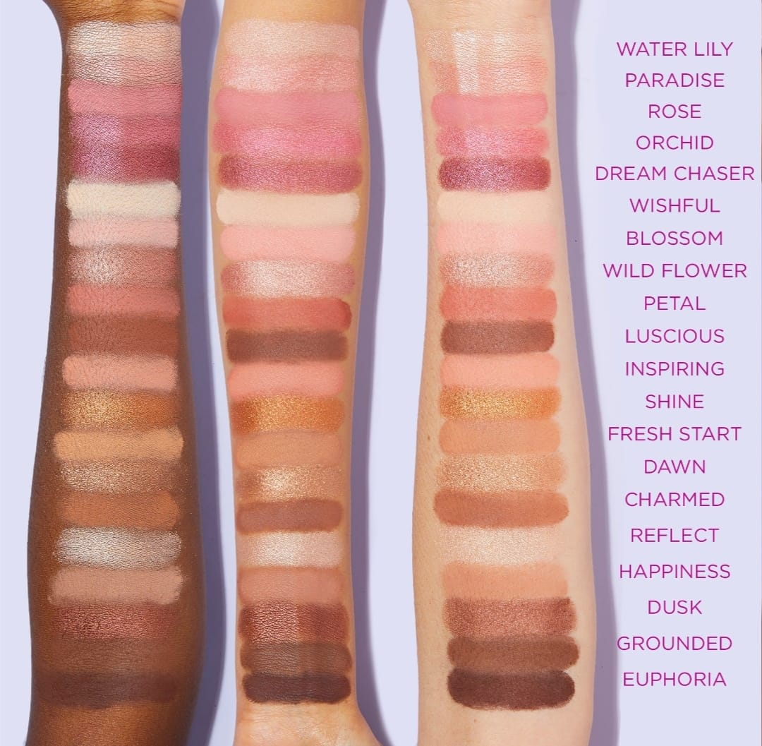 This versatile palette features a perfect balance of matte, shimmer, and metallic finishes, making it your go-to for everything from soft, everyday glam to bold, statement-making eyes. The ultra-pigmented shades flatter every skin tone and are designed to bring out your natural beauty with a juicy, radiant glow.